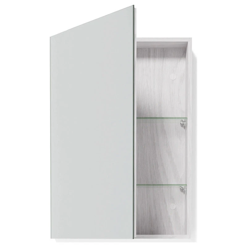 Slimfit 600 is a contemporary style, capacious, single-door bathroom mirror cabinet. A slim profile means the cabinet does not stick out too far from the wall. Mounted inside the door is a times five magnification vanity mirror, very useful for when applying make-up or wanting an enhanced view. Adjustable hinges make it possible to fine-tune the door fit and are ‘soft close’ to stop the door from slamming.