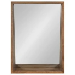 Uniek Hutton Wood Framed Wall Mirror With Shelf, Rustic Brown 18×24
