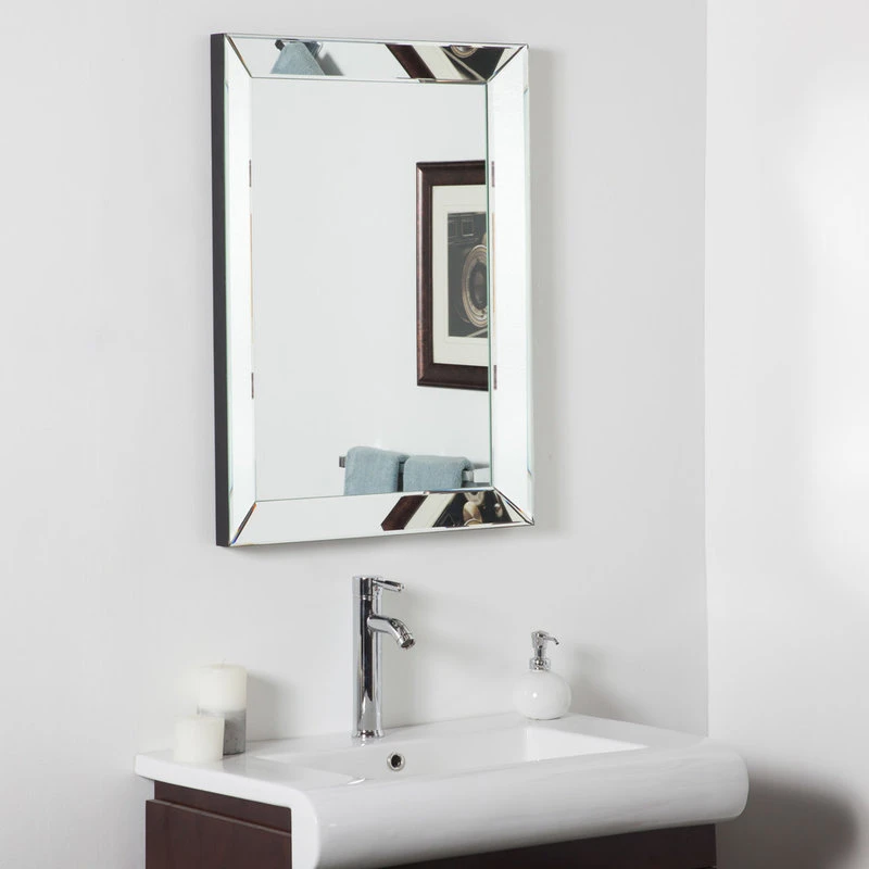 - Heavy beveled mirror framed mirror. The mirrors’ frame is beveled and hand cut. The frame is made from four, 3.15″ wide beveled mirrors.