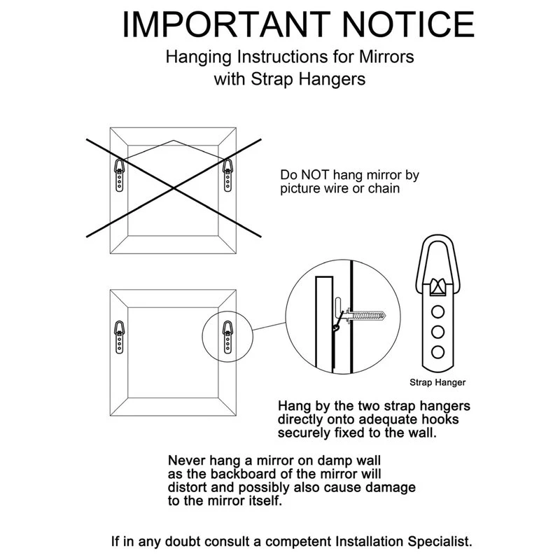- D-rings are affixed to the back of the mirror so it is ready to hang right out of the box