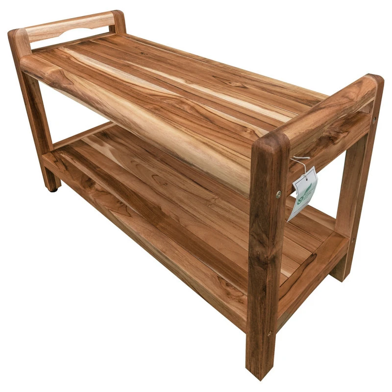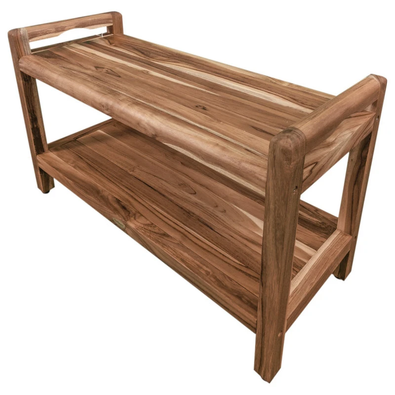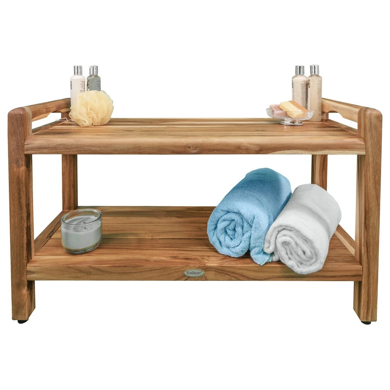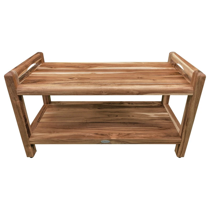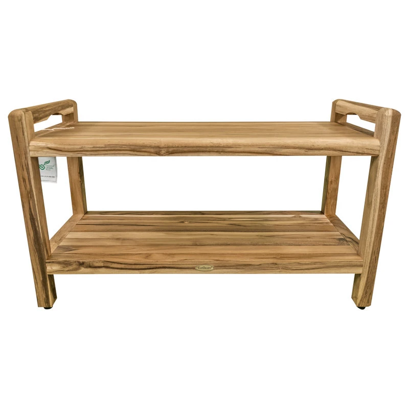 EcoDecors EarthyTeak Classic Shower Bench, Shelf And LiftAide Arms, 35″