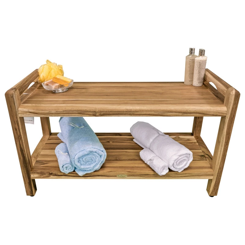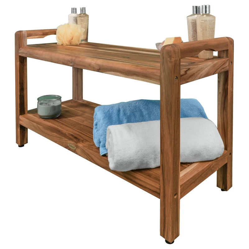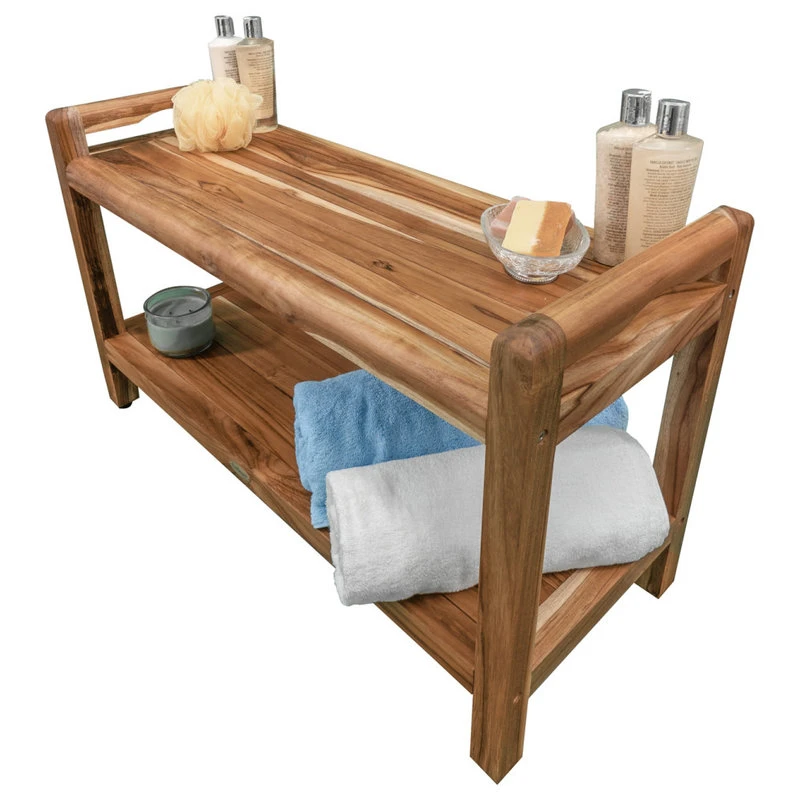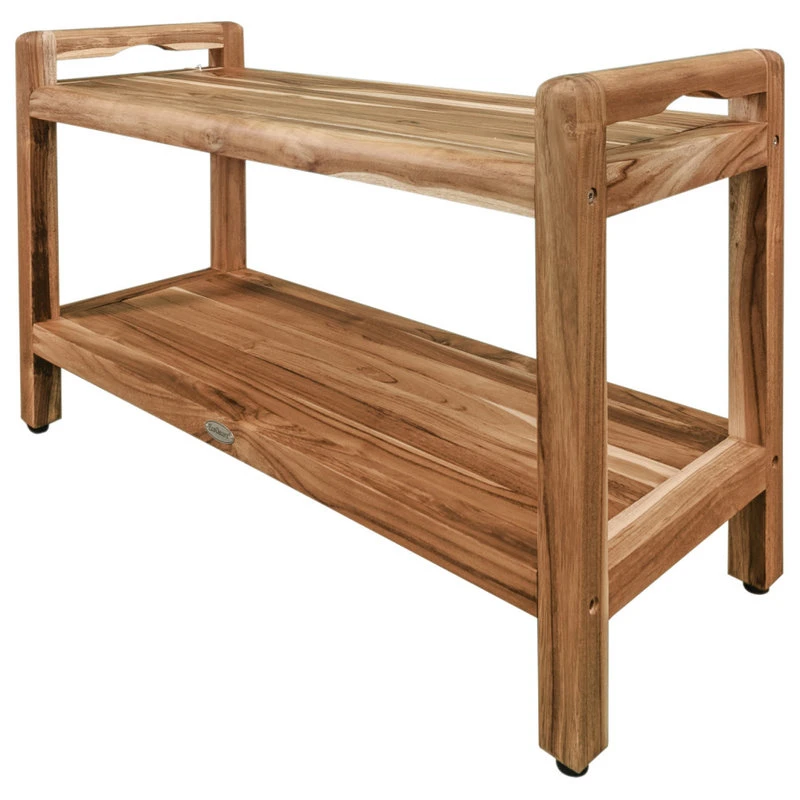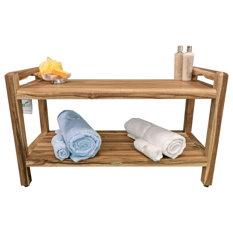 EcoDecors EarthyTeak Classic Shower Bench, Shelf And LiftAide Arms, 35″