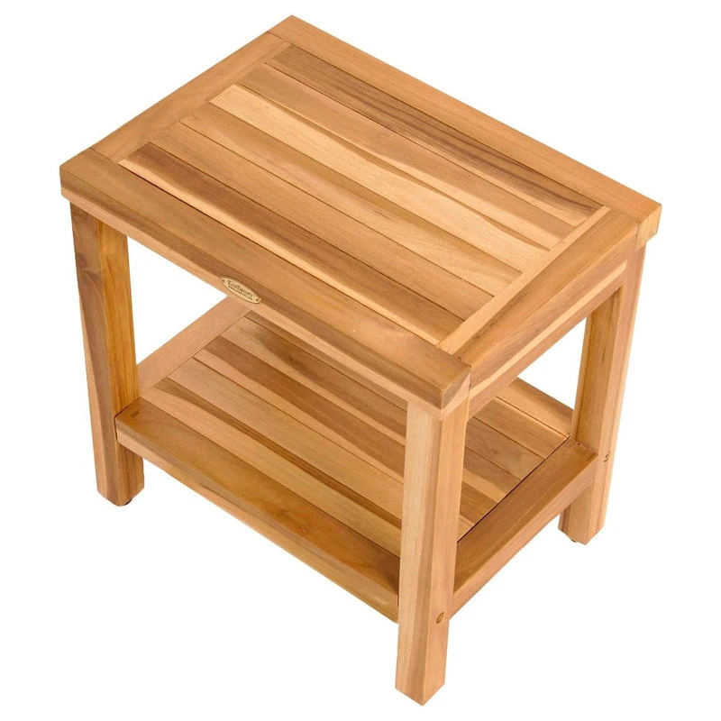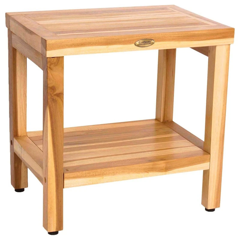 EcoDecors EarthyTeak Classic Teak Shower Bench With Shelf, 18″