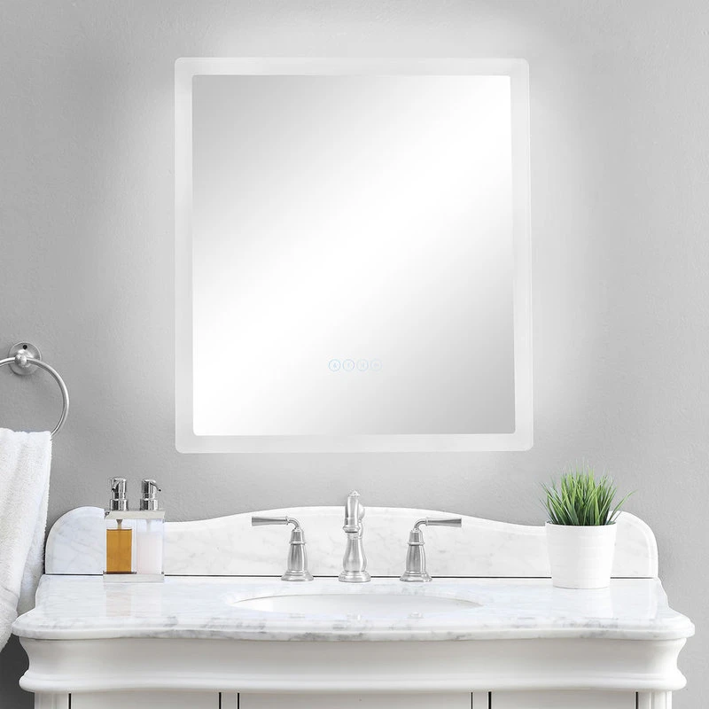 Getting ready for the day has never been more enjoyable with the Eisen smartLED Illuminated Mirror. An elegant border of frosted glass provides soft, filtered light without compromising the reflective quality of the mirror surface. The mirror surface has been treated to remain fog-free, so you don�۪t need to worry about wiping after showering or bathing. Built-in speakers are located on the right and left sides of the mirror to provide a full, balanced sound. The speakers can easily be paired to your mobile devices via Bluetooth, so you can listen to your favorite songs while getting ready for the day. Use the sleek control buttons located directly on the mirror surface to dim the lights, adjust the volume or skip tracks on your playlist. Double USB charging ports located underneath the mirror body make it convenient to charge your phone or tablet. The smartLED collection comes with the option to plug into an outlet or wire directly to the wall, offering greater flexibility for homeowners. Available in three different sizes to suit your space, this piece comes ready to hang right out of the box with mounting hardware included.
