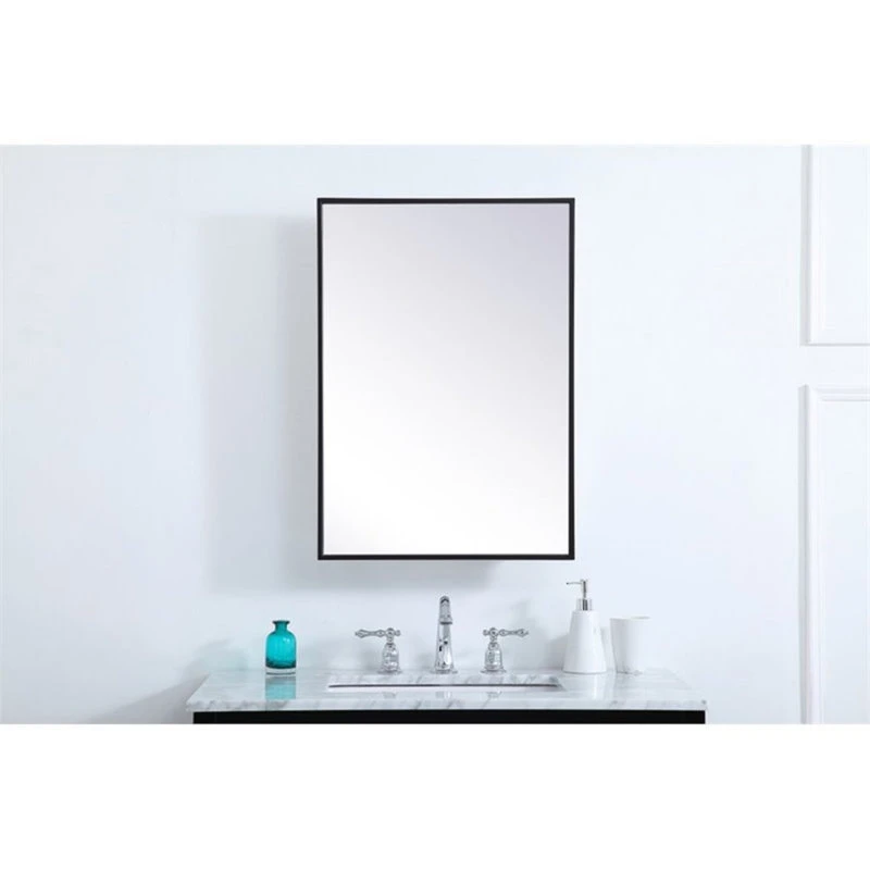 The Wyn medicine cabinet reflects a minimalist’s design and trendy styling with its rust-free metal frame mirror. The classic clean and straight lines of this rectangular mirror provide you with a timeless and elegant look in your bathroom, featuring an ultra-thin metal frame in deep profile, reflecting a minimalist’s design and industrial styling. Open its door to the left or right to reveal two adjustable glass shelves for storing your toiletries. There are four metal keyhole hangers installed on the back of the mirror for easy installation, mounting hardware is not included. Constructed with a manufactured wood frame for exceptional strength and durability.