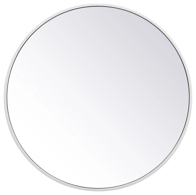 Metal frame round mirror 24 inch in WhiteEnhance the appeal of your home or office with this contemporary mirror, slightly antiqued, featuring a thin rounded metal edges in a deep profile, reflecting a minimalist’s design and trendy styling. To ensure your home safety, we use a metal hanger ring that are securely welded to the back of the metal frame , which sit on top of the frame for easy hanging. We recommend using suitable heavy duty picture/mirror hooks, selecting the best type of fixing for the particular wall you wish to hang the mirror on, using the appropriate rawl plug if required.