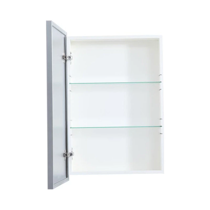 Home Living medicine cabinet reflects a minimalist’s design and trendy styling with its rust-free metal frame mirror. The classic clean and straight lines of this rectangular mirror provide you with a timeless and elegant look in your bathroom, featuring an ultra-thin metal frame in deep profile, reflecting a minimalist’s design and industrial styling. Open its door to the left or right to reveal two adjustable glass shelves for storing your toiletries. There are four metal keyhole hangers installed on the back of the mirror for easy installation, mounting hardware is not included. Constructed with a manufactured wood frame for exceptional strength and durability.