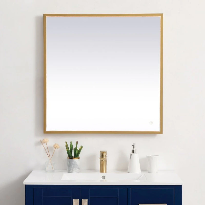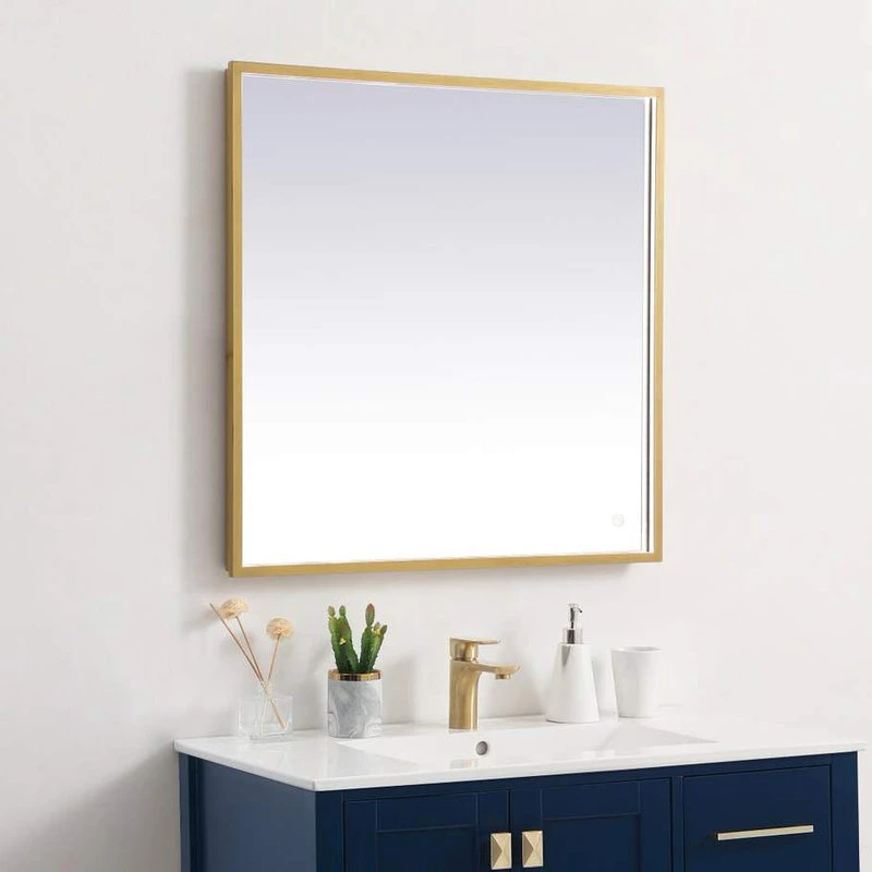 Elegant Furniture & Lighting Modern Brass Led Mirror