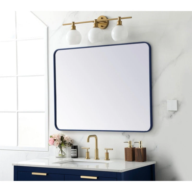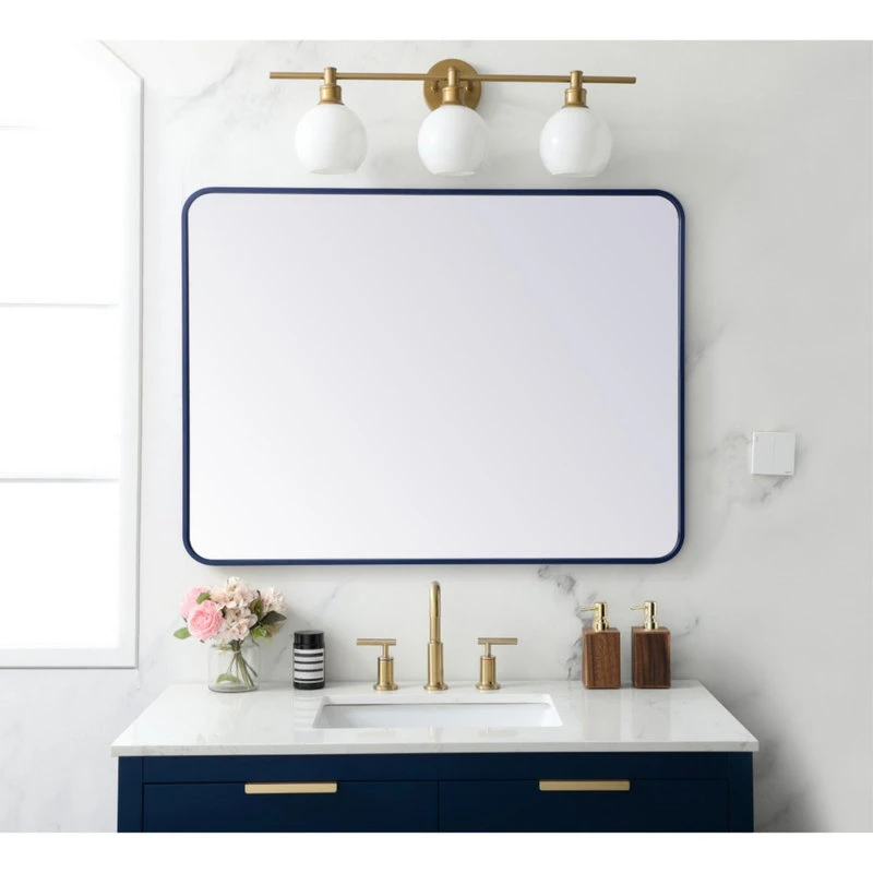 Soft corner metal rectangular mirror 30×40 inch in BlueEnhance the appeal of your home or office with this modern mirror, featuring a thin rounded metal edges in a deep profile, reflecting a minimalist’s design and trendy styling. To ensure your home safety, we used four metal hanger ring that are securely welded to the back of the metal frame , which sit on top of the frame for easy hanging. We recommend using suitable heavy duty picture/mirror hooks, selecting the best type of fixing for the particular wall you wish to hang the mirror on, using the appropriate rawl plug if required.