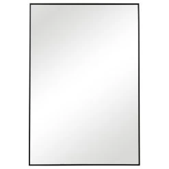 This thin black frame with plain mirror creates a simple, clean design that will complete any space. It is perfect over a bathroom vanity or wherever you want an updated, contemporary look. May be hung either vertically or horizontally. Also available in three additional finishes – gunmetal, gold and silver.