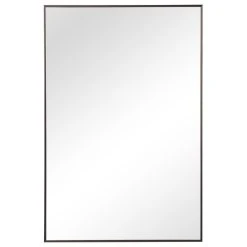 This thin frame with plain mirror and gunmetal finish creates a simple, clean design that will complete any space. It is perfect over a bathroom vanity or wherever you want an updated, contemporary look. May be hung either vertically or horizontally. Also available in three additional finishes – black, gold and silver.