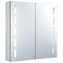 LED- LED task lighting integrated to the front as well as inside top of the cabinet. Brightens at 22 Lumens in Warm White color at 3500k (14.4W/M). Our brilliant lights have an estimated life expectancy of 36,000 hours. Features a blue lighted touch on/off button. Mirror must be hardwired, wiring comes out from the top right of cabinet. (Light is not strong enough to be the source of light for your vanity/washroom, additional lighting will be needed.)