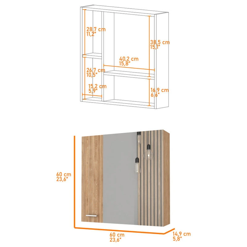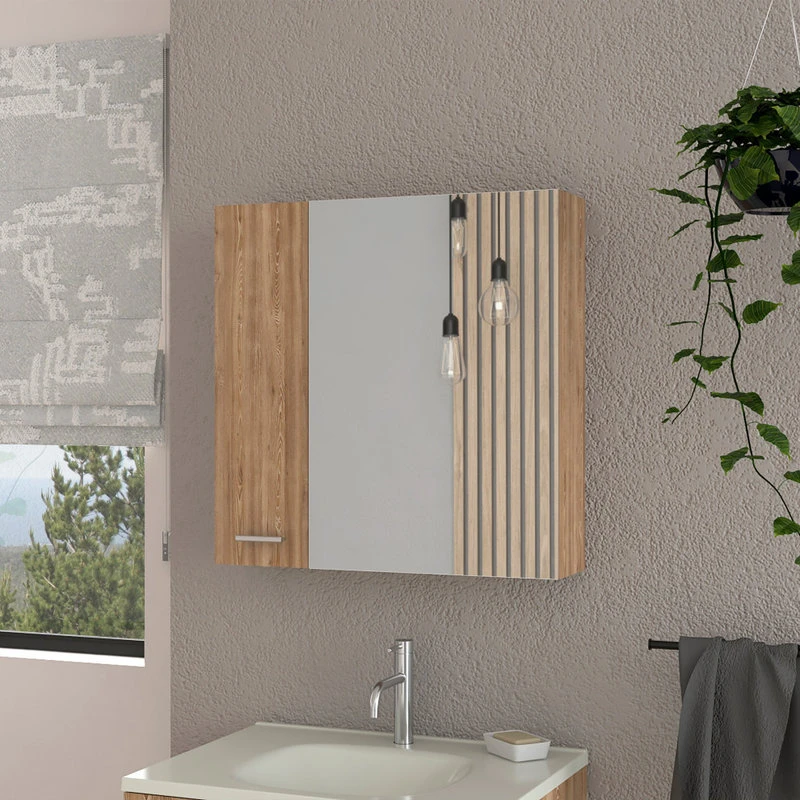 Looking for more storage and a gorgeous mirror to help you get ready each day? Check out the Aria Mirrored Medicine Cabinet! This sleek and modern cabinet has a single mirrored door (15,1”Hx15,8”W) with interior shelves, perfect for holding all your bathroom essentials. The exclusive pine manufactured wood finish is beautiful and durable, and the dimensions (23,6”Wx23,6”Hx5,8”D) make it a perfect fit for any space. Whether remodeling your bathroom or just looking for a stylish and functional addition, the Aria Mirrored Medicine Cabinet is a great option!