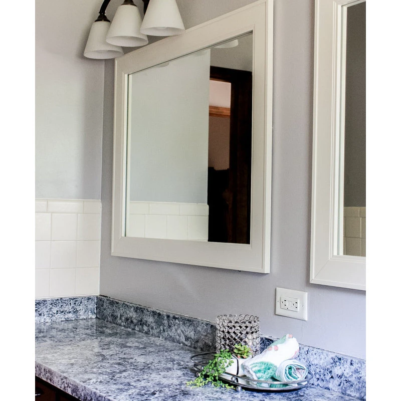 Hangrail for installation will be applied on the width of the frame. All assembly hardware and instructions will be included. Additional hangrails are included if the opposite orientation is desired for installation. The dimensions displayed are the final outside dimensions of the frame, including the mirror. CATII safety backing applied on all mirrors. Approved for high-moisture areas such as bathrooms.