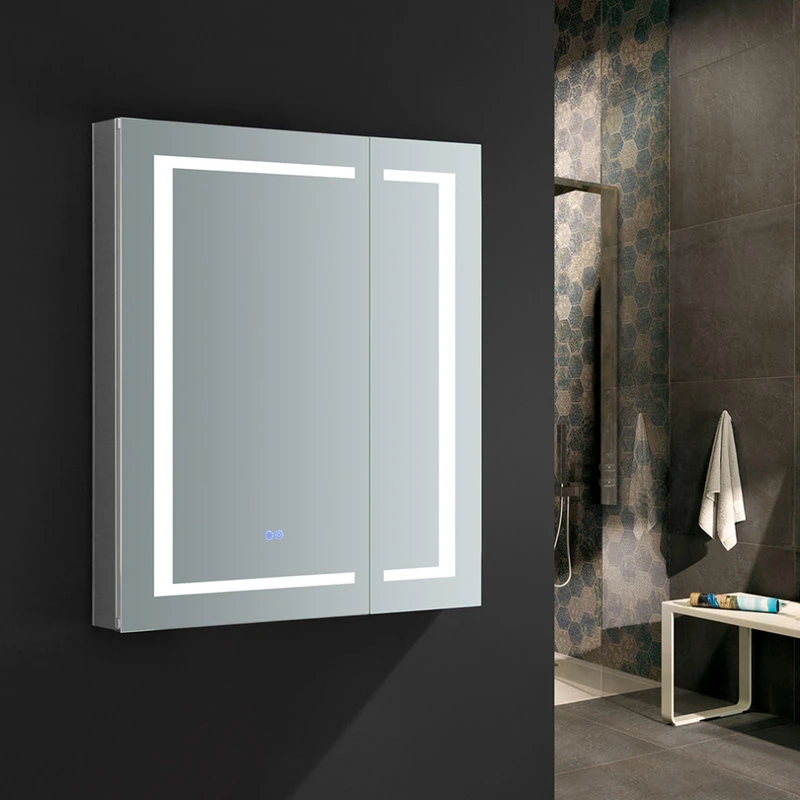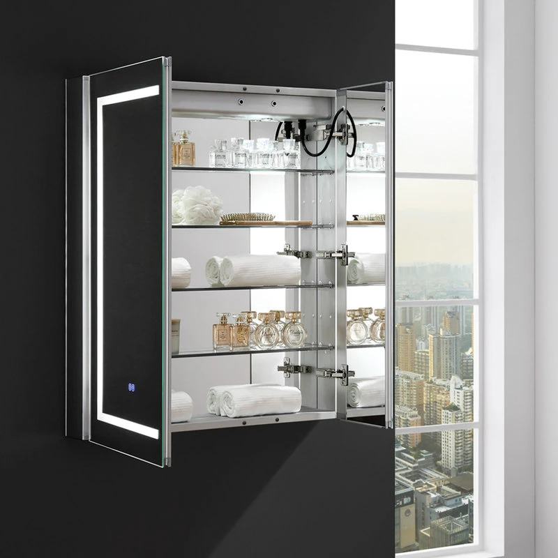 The Fresca Bathroom Medicine Cabinet comes with everything you need to create an elegant and modern bathroom, with every convenience right in front of you. On the outside, it’s a sophisticated mirrored medicine cabinet with a built-in dimmable surface LED task light which creates an illuminated frame within the mirror. It also has a defogger feature. Inside, there’s an LED light and a handy electrical/USB outlet combo for an electric shaver, toothbrush or other essentials. The interior features four adjustable glass shelves and a mirrored back wall. The double-sided mirrored doors swing 170 degrees on soft-close BLUM hinges. Measuring 30″W x 36″H x 5″D, this medicine cabinet is available in several sizes.