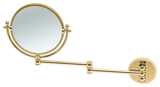 This magnifying 7 inch swinging wall mirror is a must-have for every bathroom. The two-sided mirror is attached to an extendable arm which can reach 14-Inch out from the wall. The traditional style, bright finish and quality construction, along with the 3x magnification on one side make this piece pleasing to any bathroom.