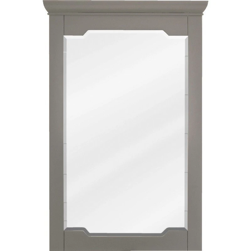 A geometric frame around the beveled glass gives this Chatham mirror a unique look. It can transform a room with its contoured top and subtly carved details. This mirror works perfectly with small vanities. Coordinates well with transitional style vanity collections. Overall measurements: 22″ W x 1-1/2″ D x 34″ H. Made of furniture-grade hardwood.