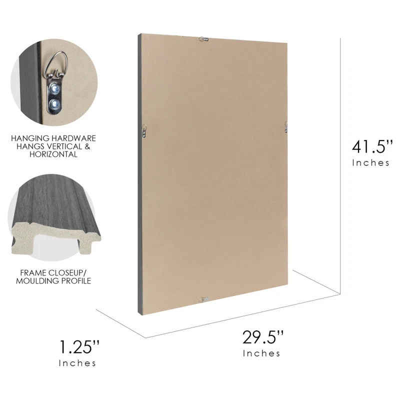 - Overall Dimensions: 29.5″ W x 41.5″ H x 1.25″ D