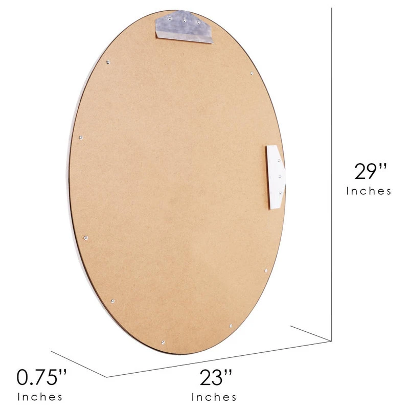 Mirrors are essential for dispersing light, as they concurrently add visual height and width to a space. Add a timeless piece like our beveled edge oval wall mirror to add warmth and comfort to your living room decor, or pair it with a decorative wood end table and runner rug in an entryway. This mirror is versatile enough to keep in a bathroom or home office to catch a quick glimpse before your early morning video conference call.