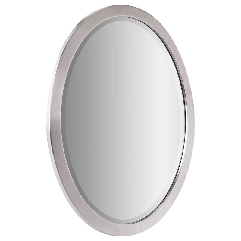 TRADITIONAL DECORATIVE APPEAL – Expand your decorative repertoire with this traditionally designed oval metal framed mirror in chrome with beveled edging skillfully crafted with attention to detail.