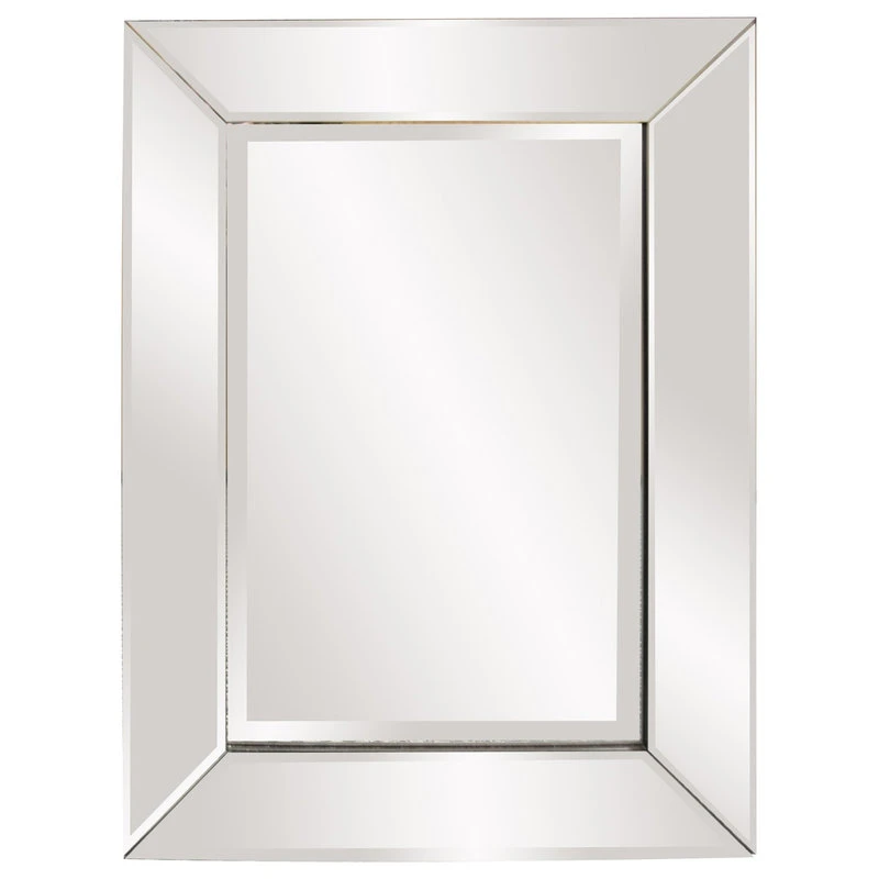 It features a small rectangular frame with a mirrored finish providing for the most magnificent reflections of light and color. Each mirrored section is beveled adding to its style and beauty. It is a perfect focal point for an entryway, bathroom, bedroom or any room in your home. D-rings are affixed to the back of the mirror so it is ready to hang right out of the box in either a vertical or horizontal orientation.
