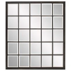 A rectangular metal frame that houses mirrored tiles that create a windowpane effect. It is then finished in an oil rubbed bronze. This perfect accent piece for an entryway, bathroom, bedroom or any room in your home. D-rings are attached to the back of the mirror so it is ready to hang right out of the box in a horizontal or vertical orientation! Each mirrored glass tile on this piece is beveled adding to its beauty and style.
