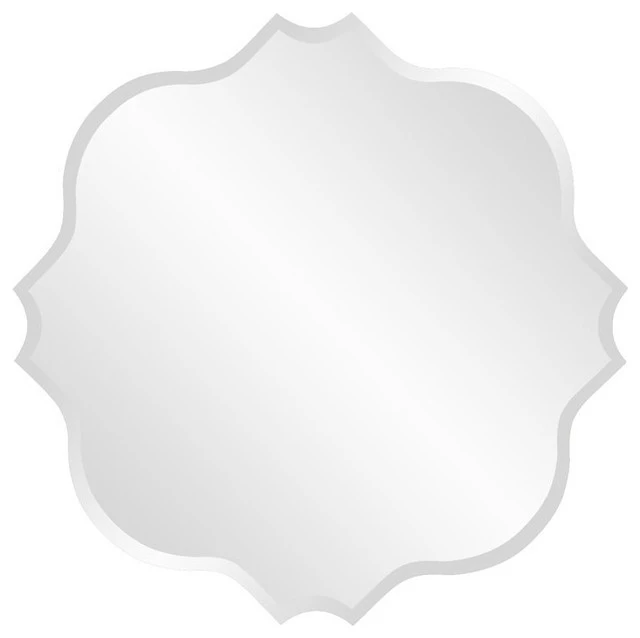 This frameless mirror is just that: all mirror – no frame! the shape of the glass is square with fancy, rounded and scalloped edges and corners. It is beveled enhancing its simplistic beauty and style. Its sleek style makes this mirror a favorite for bringing some flair to your decor. This simple yet stunning piece would be a great addition to any room. It is a perfect focal point for an entryway, bathroom, bedroom or any room in your home. D-rings are affixed to the back of the mirror so it is ready to hang right out of the box!