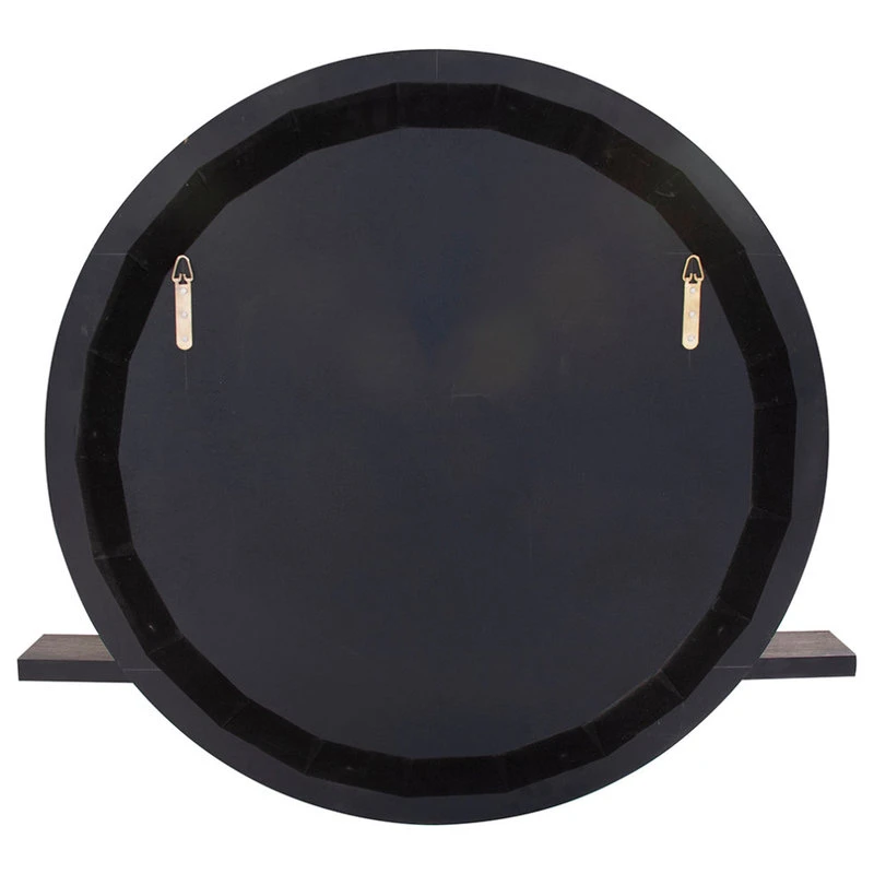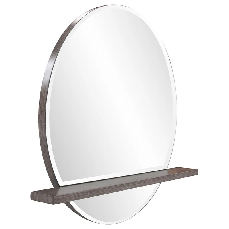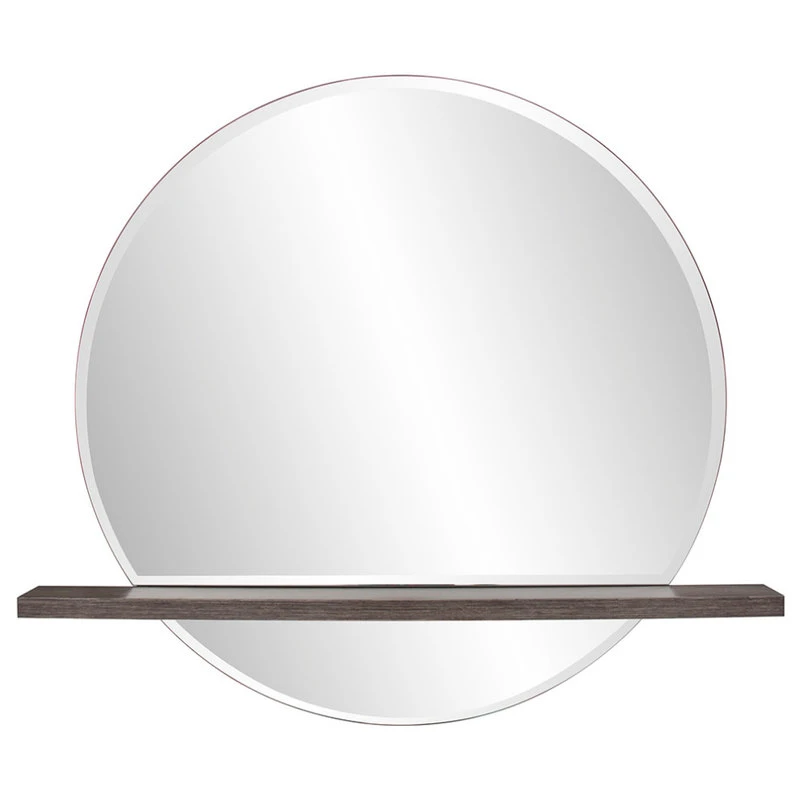 Our Winston Mirror perfectly illustrates both form AND function. The simple round wood frame is only visible from the side. When revealed, it features a rich gray wood stain finish. What makes the mirror unique is the shelf placed across the front of the beveled mirror. The utilitarian appeal of this piece makes it perfect for a bathroom, vanity, entryway or really ANY room in your home! D-rings are affixed to the back of the mirror so it is ready to hang right out of the box!