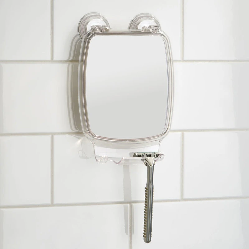 The iDesign Power Luck Suction Bathroom or Shower Mirror with Razor Holder provides modern functionality for your bathroom. This mirror features a small, curved shelf that provides 2 hooks for hanging razors. The strong suction cups will adhere to any nonporous surface and can hang on any bathroom or shower wall. No nails or screws are required for installation! The plastic finish makes the mirror durable and cohesive with any decor. Measuring 6.25″ x 8.5″ x 2.5″, the iDesign Power Luck Suction Bathroom or Shower Mirror with Razor Holder is the accessory you need to simplify your bathroom organization.