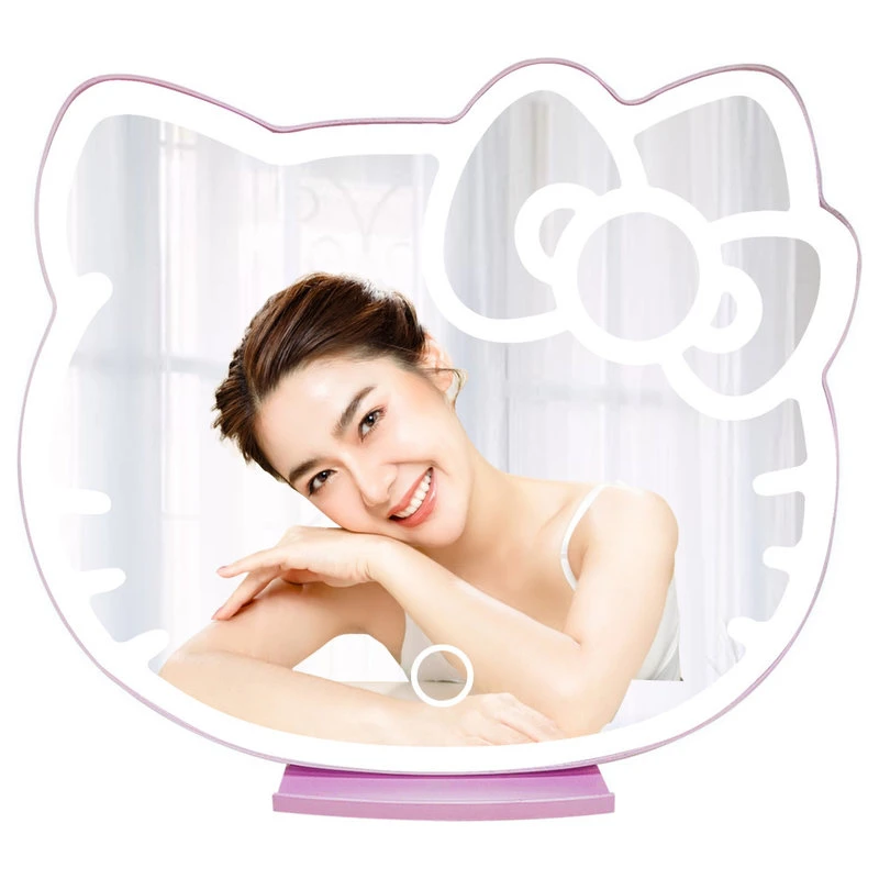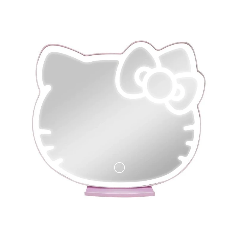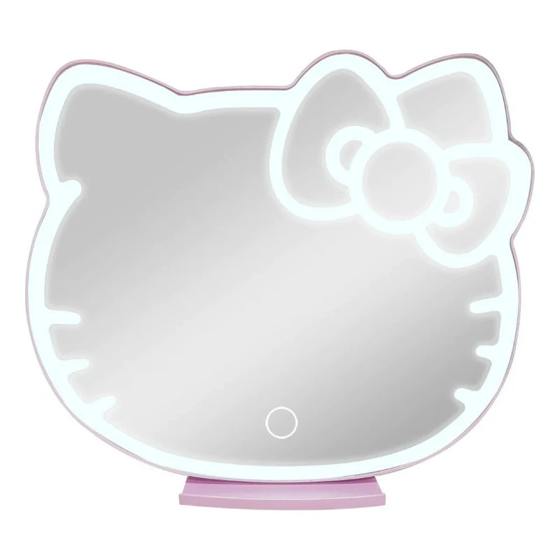 Getting ready just got so much CUTER with the Impressions Vanity Hello Kitty Supercute Tri-Tone LED Table Mirror. Catch every detail with this HelloKitty shaped mirror, easily adjustable to your unique makeup lighting needs. Simply stand the mirror up, on any desk, with the built-in stand or prop your phone up with the hidden extendable tray!