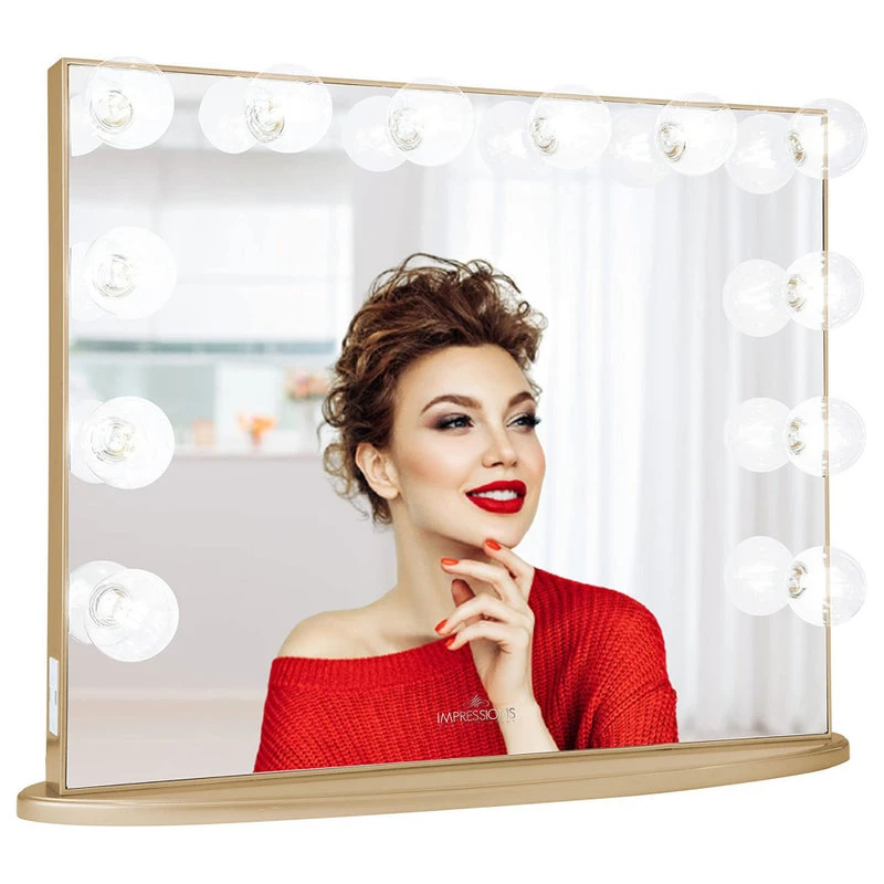 The Impressions Vanity Hollywood Glow Plus is our newest size offering of our bestselling Hollywood Glow Series. An ultimate statement in vanity elegance, featuring our exclusive patented Hollywood Glow Frame the unique, very chic, and modern design radiates a new brand of Hollywood glamour and simple sophistication that has made countless makeup lovers, pros and beauty bloggers fall in love. Join thousands of happy owners and let your every day glow!