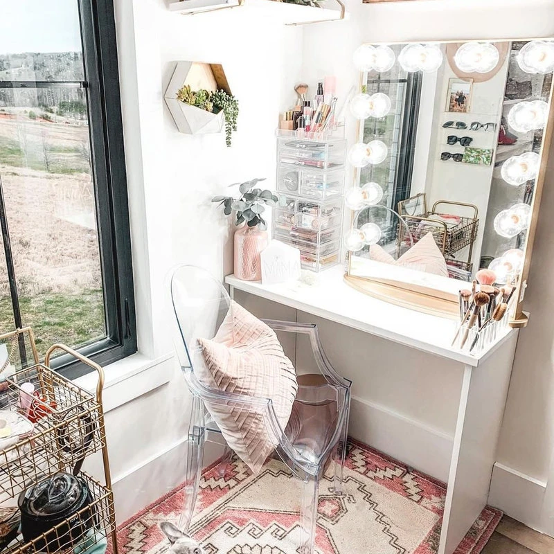 Includes a detachable base to set the mirror and complete your vanity station. Or, remove the base and this mirror can be easily wall-mounted with the pre-drilled holes on the back!