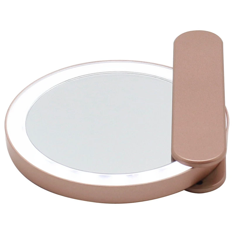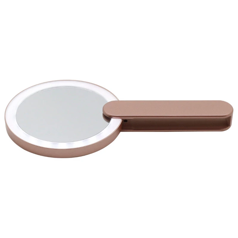Our uniquely styled LED Swivel Makeup Mirror that lets you look your best. This handheld on-the-go mirror glows with the ring LED lights to illuminate your entire face.