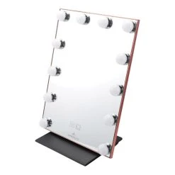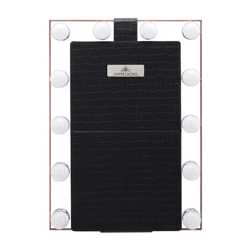 Ready to jetset? Glam wherever you go with the Lumiere Touch Pad Pro! A travel friendly design with premium and stylish faux crocodile leather; that’s detachable and foldable converting into a mirror stand. Equipped with an elegant and sturdy aluminum frame with a beautiful and durable anodized finish. This mirror features an LED Striplight or 12 ultra-bright Hollywood style bulbs with adjustable brightness. Now take the Hollywood glamour with you on-the-go!