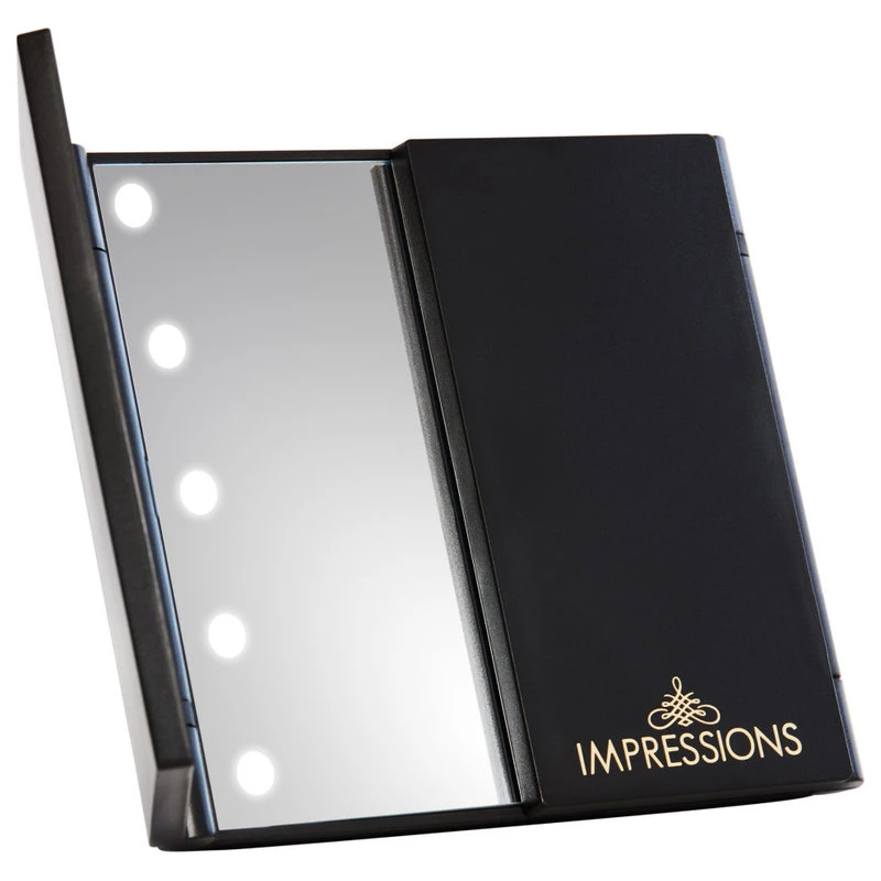 Glam on the go like a pro with Impression Vanity’s® Nova Wireless Charging Tri-fold LED compact mirror. comes with built-in illuminating LED lights with adjustable brightness to illuminate your glow!