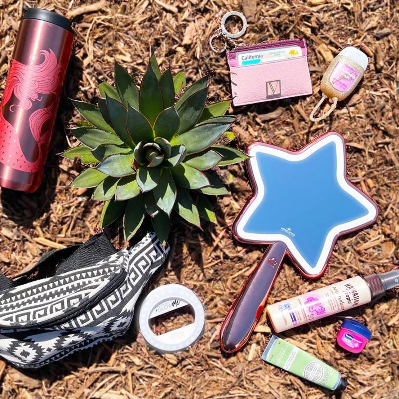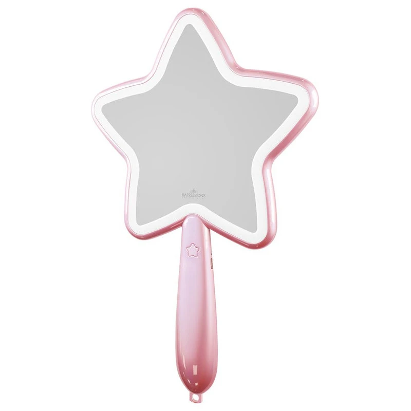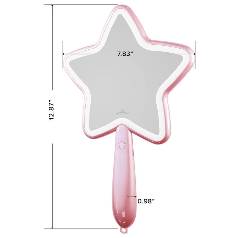 Be the star of the show with The Starlet LED Handheld Makeup Mirror. Featuring a playful star-shaped design and dimmable, long-lasting brightness. The perfect accessory for makeup touch ups with 5x magnification to keep you looking flawless. The extendable hanger at the end of the handle allows you to easily mount on the wall. Simply recharge by plugging in the USB charger.