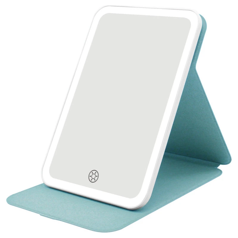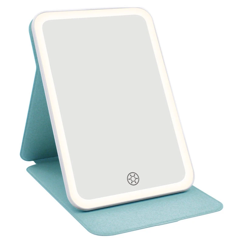 Strip light, built-in stand, and stylish as ever, the Touch Tablet Mini Tri-Tone LED Makeup Mirror with Folio Cover is the ultimate piece to take with you on all your adventures. Simply tap to turn on/ off or dim and place it in your purse with ease! The folio cover is not only sleek in style but it is multi-purpose. The folio cover protects the front mirror along with serving as a base stand, so you can get GLAM hands-free!