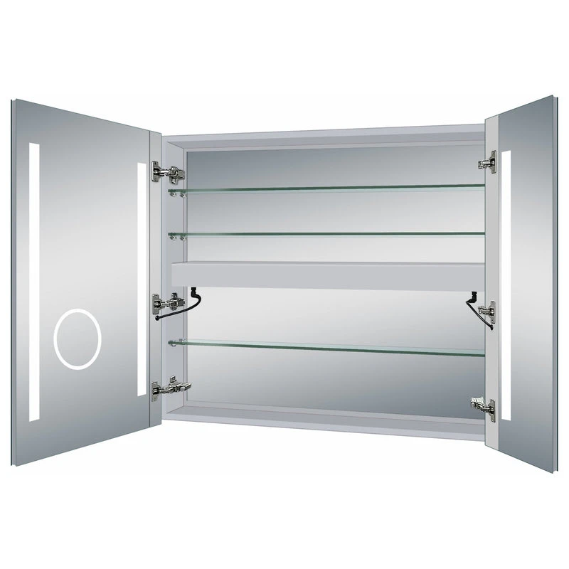 The Melania 42 in. W x 35 in. H Double Door Lighted Recessed Medicine Cabinet, newly introduced by innoci-usa, is loaded with exciting features, such as a built-in 6 in. lighted cosmetic mirror, dual color temperatures, mirror front touch control, built-in electrical outlets, USB ports, and much more. Known for its uncompromising originality, cutting edge designs, modern technology and quality, the Melania Collection by innoci-usa brings to the market another bathroom décor piece that is destined to become a luxury solution to every household.