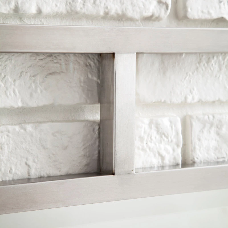 The Boston 30-in. Geometric Deco Mirror by James Martin Vanities brings you an innovative design with a touch of luxury. This mirror’s durable metal frame is expertly hand-crafted stainless-steel and is available in three rich finishes brushed nickel, matte black or radiant gold. The geometric fretwork placed around the frame brings a sense of dimensional appeal and architecture structure to the mirror. You can hang them side by side over the vanity, in different arrangements or staggered throughout your home. For your convenience, the mirror comes with mounting hardware in the package.