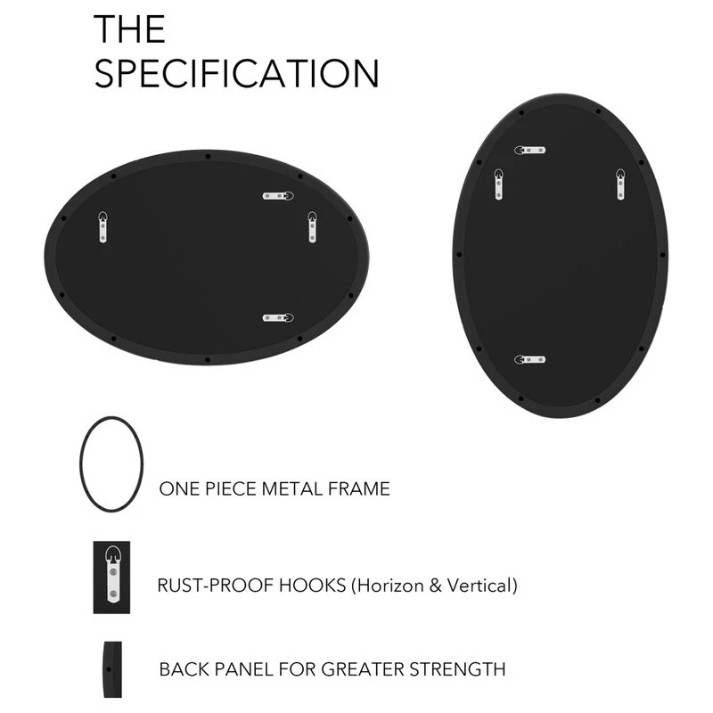 Our Oval vanity mirror uses premium quality Metal material and MDF backing to avoid rust and corrosion when wall-mounted, making it a perfect bathroom mirror for vanity. Modern and Sleek, Simple yet elegant. Which can live significantly up your space. Easily enhance the beauty of any room. The frames are made of quality materials and the black iron frame adds elegance and class. Our mirror is made of high-quality glass, preventing warping and distortion and giving accurate HD imaging. This timeless oval mirror is the ideal decoration for a bathroom 、 living room、bedroom、entryway even fireplace. Using oval mirrors as home decor adds light and instantly enhances the beauty of any room in your home!