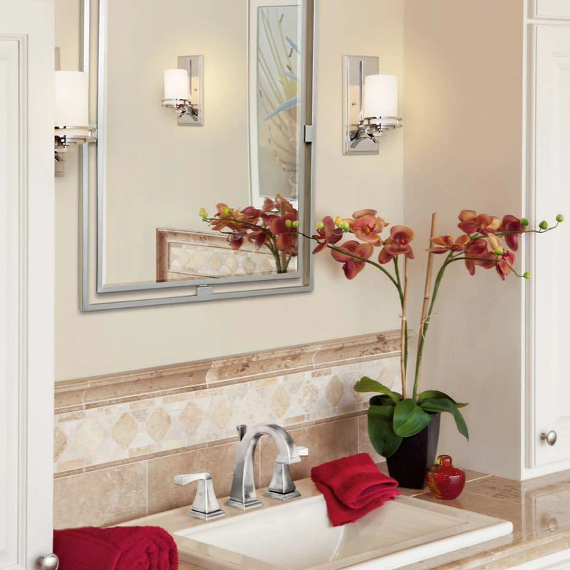 Amanti Art Vanity White Narrow Beveled Bathroom Wall Mirror – 31.5 X 25.5 In.