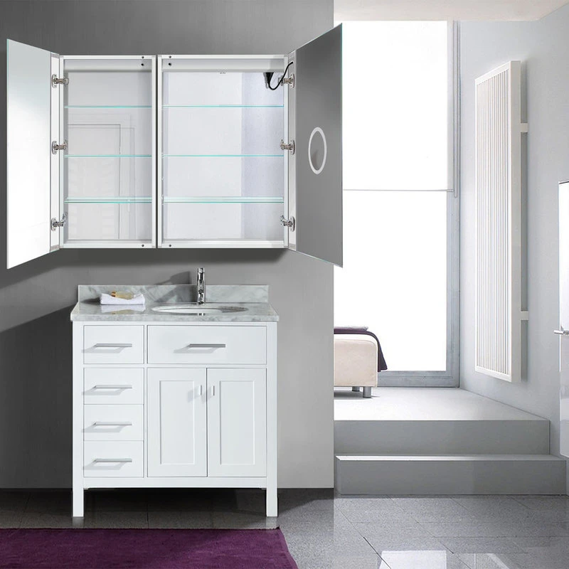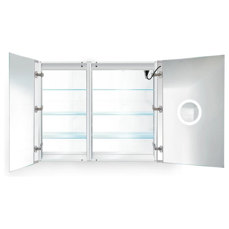 Open the lighted section cabinet to reveal the full suite of amenities. In the mirrored door, a 3x magnified, LED-lit mirror is perfect for detailed makeup application. The mirrored interior is illuminated automatically for a luxurious touch. Our wide-angle hinges provide freedom of motion and panorama. The 2+2 smart outlet contains two traditional outlets and two USB interfaces to keep beauty tools, as well as a smartphone or tablet, close at hand. We ensure reliable optical clarity with active defogging technology. This LED Medicine Cabinet is limited only by your imagination.