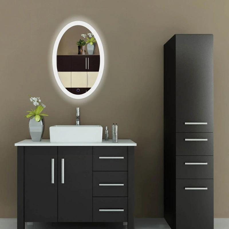 The Fog Free Oval Bathroom Mirror features integrated Bulb type: LED that not only makes getting ready that much easier, but which also creates the stunning look of a glowing halo. A heading coil pad in back that defogs the glass, while a simple touch-activated sensor in front allows for dimming the lighting. Hung vertically or horizontally, this elliptical mirror will make for an impressive addition to the bathroom.