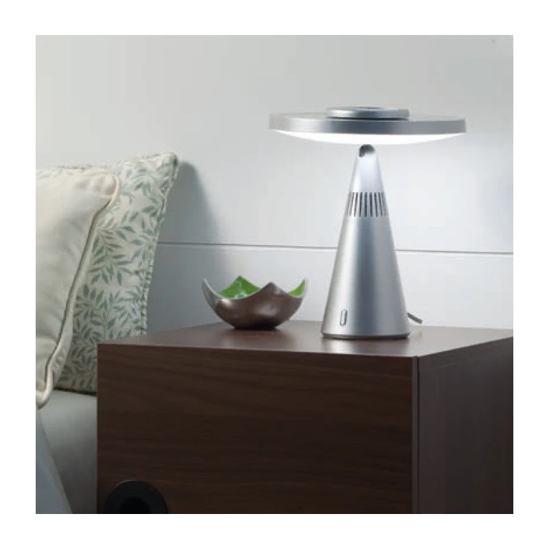 - Nightstand lamp and makeup mirror with Bluetooth speakers.