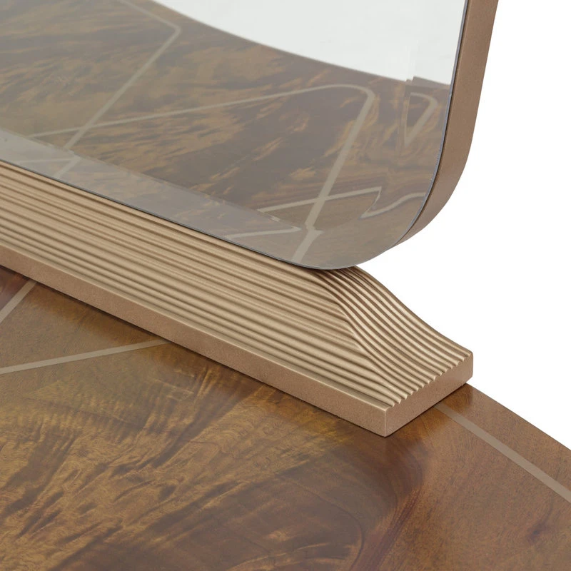 The Malibu Crest Vanity Mirror ready to enhance your chic style! With a stunning art deco shell design, Burnished Gold finished details and an elegant base, this accent is guaranteed to deliver a unique touch to any space.