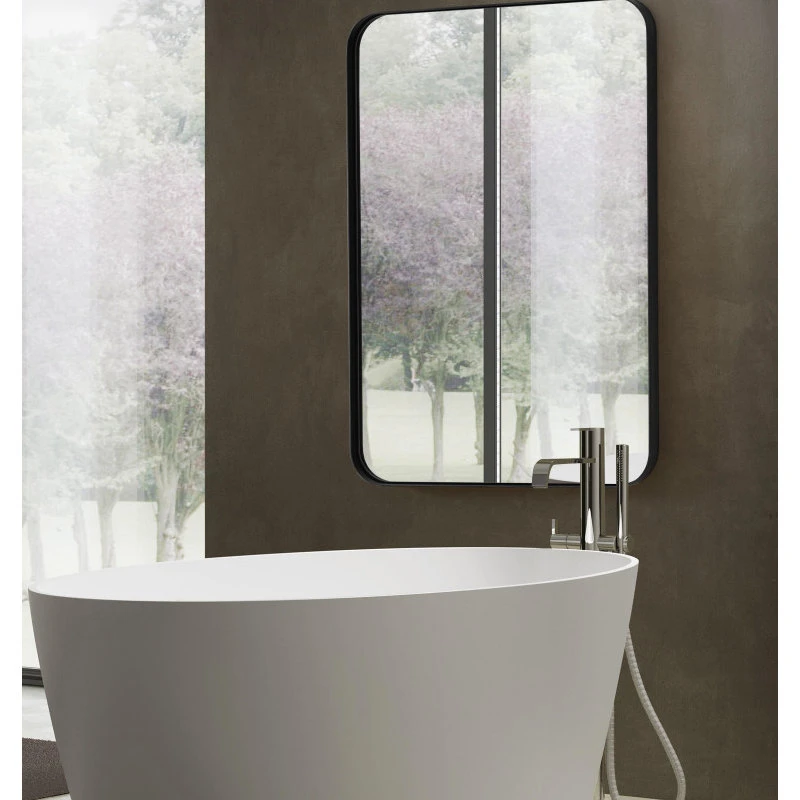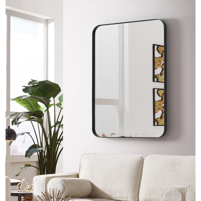 * MODERN DESIGN MIRROR: This mirror is the ideal choice for a vanity, living room, entry room, and bathroom. The Aluminum metal frame adds elegance and class. The polished mirror is presenting a beautiful reflection without any distortion of vision, and solid MDF backing prevents corrosion in humid environments, make it perfect for a bathroom.