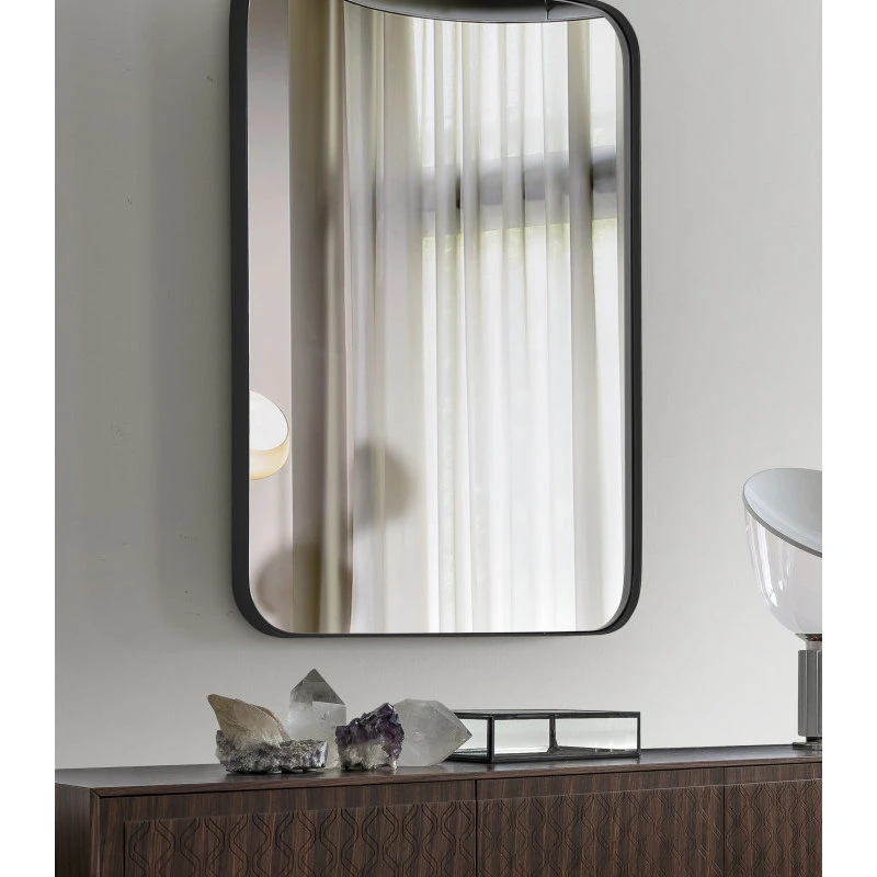 Edged with a slim stainless aluminum band, this minimalist Wall mirror curves for a modern and elegant silhouette. Mount it horizontally or vertically and is safe to hang.