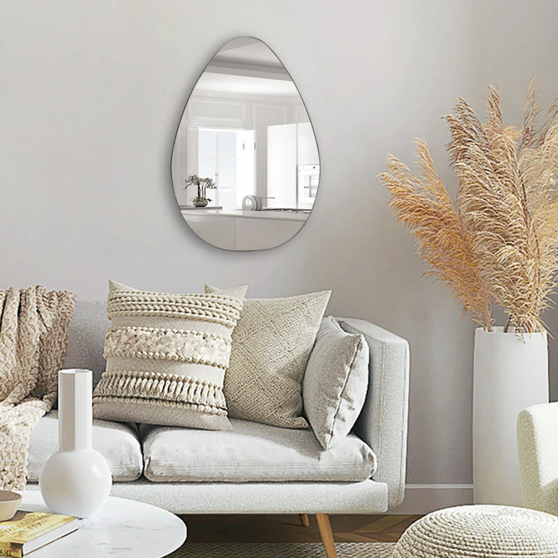Mirrorize frameless teardrop shaped bathroom vanity mirror is the ideal mirror for the home interior. Our shaped vanity mirror functions great in all living room decor spaces. It is stylish and suitable as a bathroom vanity mirror, hallway mirror, bedroom mirror and instantly doubles the light and visual depth in a small room to make the space appear larger. Its high-quality material makes for a durable and long lasting product. Mirrorize frameless mirror compliments many decors throughout the home and adds elegance to any space. Its unique frameless design and 0.5 in. thick-quality premium frameless glass brings you a sleek and modern decorating experience. Introducing this piece to a room offers a classic style fit together with high definition clarity glass. Its 24 in.x36 in. size is perfect for most contemporary spaces including modern bathroom vanities.