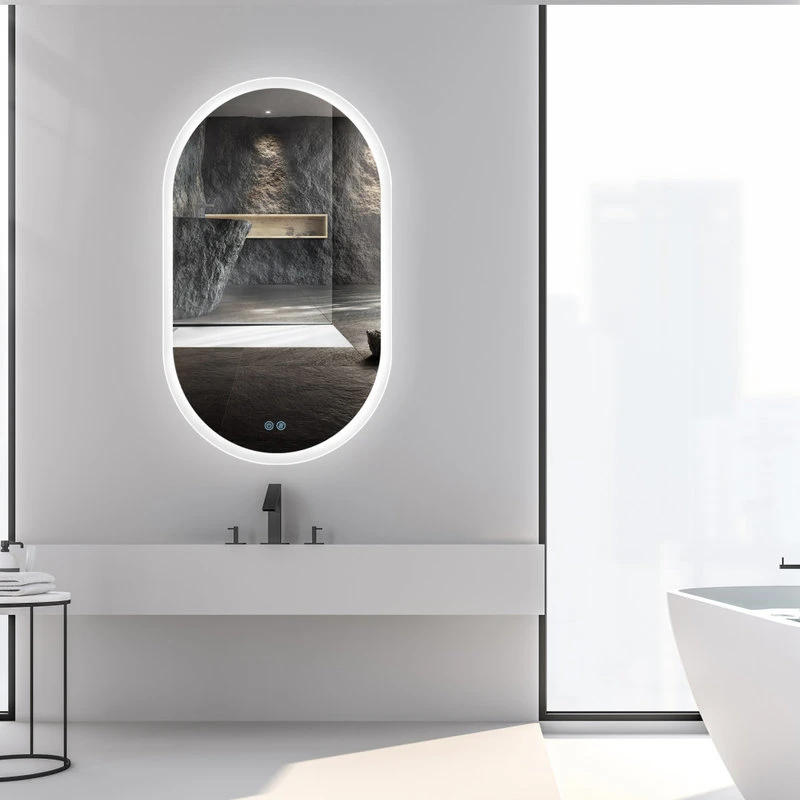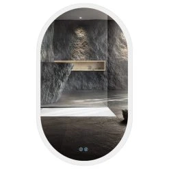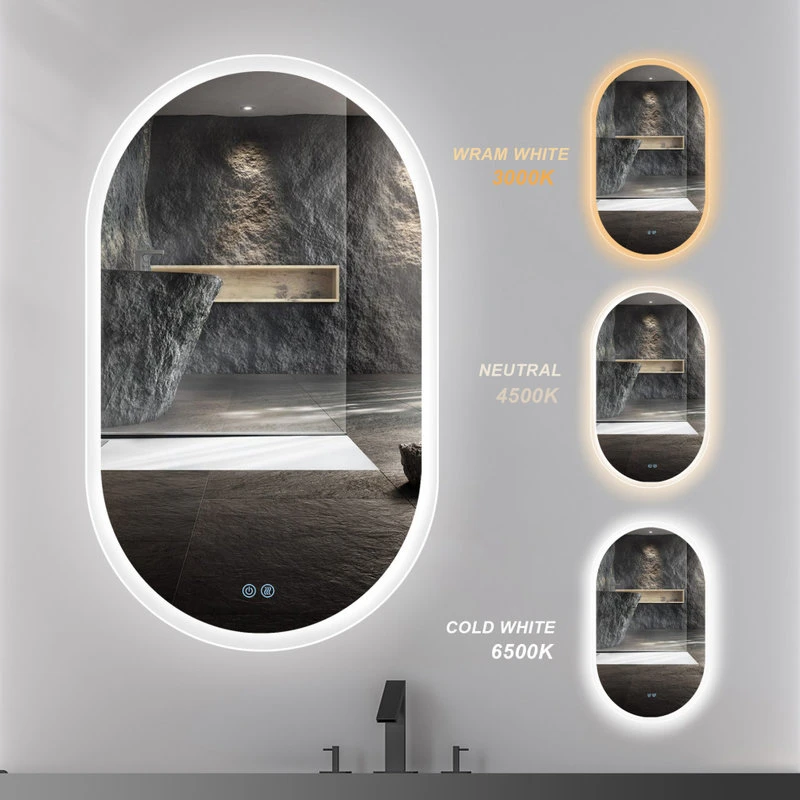 This oval LED lighted wall mirror is the most versatile and aesthetically pleasing for your space. Its bright warm and cool light is diffused behind an inset of the glass, illuminating an even glow. With a touch sensor feature, 3-different color options can be optimized for your mood. This mirror is perfect for hanging over the bathroom vanity. No need to decide which LED color temperature to purchase. This mirror has all, including anti-fog function which keeps the mirror from fogging up when you are in the shower or bath. It’s perfect for your modern bathroom needs.