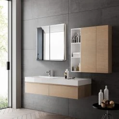 With a sleek mirrored surface inside and outside, this 30-inch frameless medicine cabinet is a versatile option. The two mirrors on the front doors have a 1/2-inch bevel and appear as one larger mirror for a design that integrates easily into any bath or powder room. Interior shelves are adjustable to accommodate your toiletries. Modern medicine cabinets are convenient for storing your daily toiletries and can be integrated into any bathroom or vanity. It’s perfect for your modern bathroom needs.